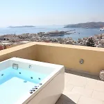 Az Ermúpoli városi hotel szobákat kínál tornáccal, klímaberendezéssel, valamint síkképernyős műholdas TV-vel. Továbbá laptop méretű széf, mini hűtőszekrénybár is biztosított. Bidé és külön WC, valamint olyan kényelmi szolgáltatások, mint a fürdőlepedők és papucsok, szintén biztosítottak. Ezek a szobák városra néző kilátást kínálnak.